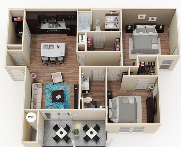 B3 – 2 Bed, 2 Bath – 1,042 Sq. Ft.